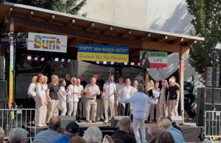 Am zweiten Septemberwochenende gehörten wir zu den zahlreichen Hammer Kulturschaffenden, die viele Besucher und Besucherinnen in die Stadt lockten, um die unterschiedlichsten Performances an besonderen Orten unserer Stadt genießen zu können. Unser Auftritt auf der Bühne im Martin-Luther-Viertel lud bei Sonnenschein viele Menschen zum Verweilen und Mitswingen ein. Die positive Resonanz war nicht zu überhören und steigerte bei uns die Vorfreude auf die bevorstehenden Konzerte.